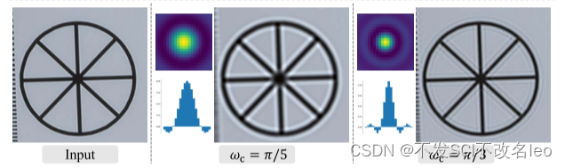 (i,j)表示filter核坐标(类似高斯模糊也有的这么一个核坐标)。Wc表示的是截断频率。论文对比了不同的Wc值产生的效果,从效果中可看出,使用sinc filter可以模拟上图中前两幅图的效果。
