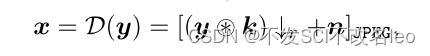 D(.)表示退化过程,主要表现为HR数据(用y表示)先和模糊核做卷积使整个图像模糊,再下采样,然后加入噪声,最后做JPEG压缩。JPEG压缩在真实场景中广泛应用(画质损失可接受,但内存可大幅度减少)。