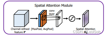 CBAM提取的特征空间注意力的方式:经过Channel Attention后,最终将经过通道重要性选择后的特征图送入特征空间注意力模块,和通道注意力模块类似,空间注意力是以通道为单位进行最大池化和平均池化,并将两者的结果进行concat,之后再一个卷积降成
