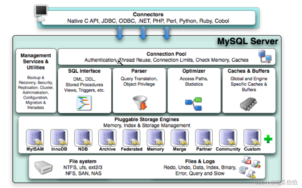 我们先简单了解一下MySQL大概的架构: