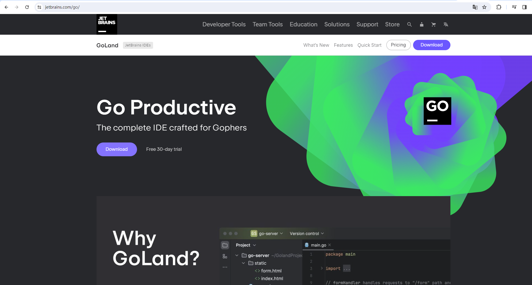 GoLand下载地址:https://www.jetbrains.com.cn/go/