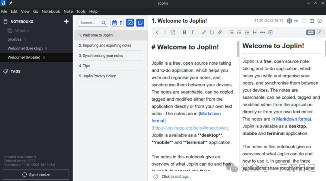 Joplin 是一个多功能且安全的笔记和待办事项应用程序,支持在 Windows、macOS、Linux、Android 和 iOS 等多个平台上进行同步。