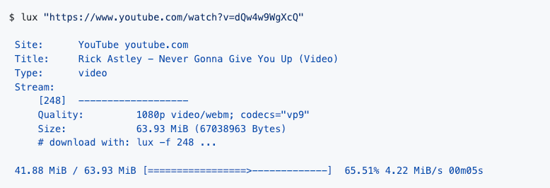 TXT、SRT 和 VTT 格式文件;Mac、Windows 和 Linux 安装包使用;Lux 是一款开源的跨平台视频下载工具。