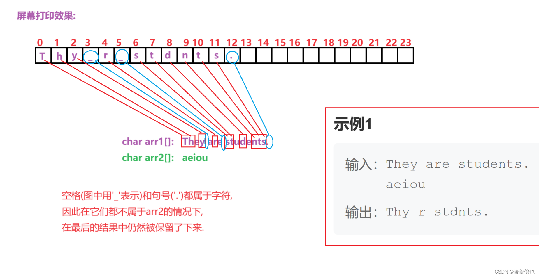 直到遍历检查完arr1中的最后一个字符再将arr1打印出来即可.