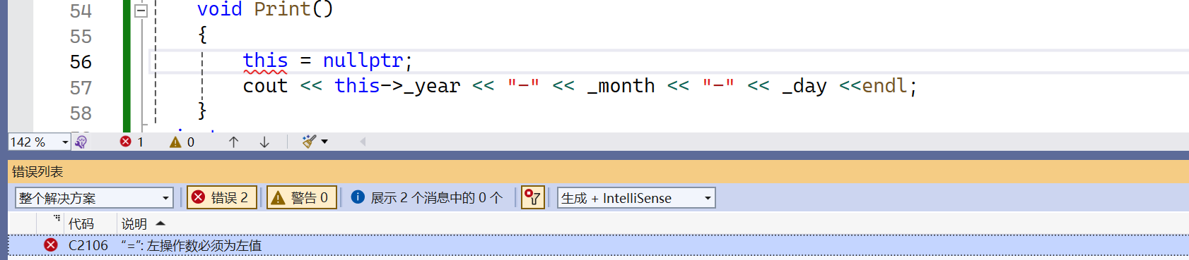 Date* const this)即成员函数中,不能给this指针赋值,但是this指向的内容可以被改变