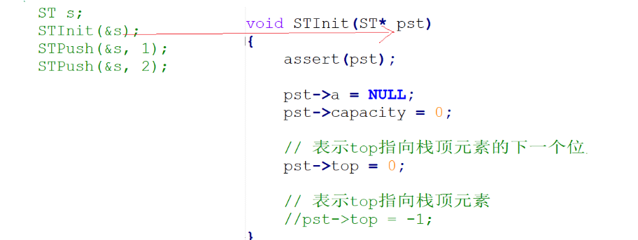 }在用C语言实现时,Stack相关操作函数有以下共性:
