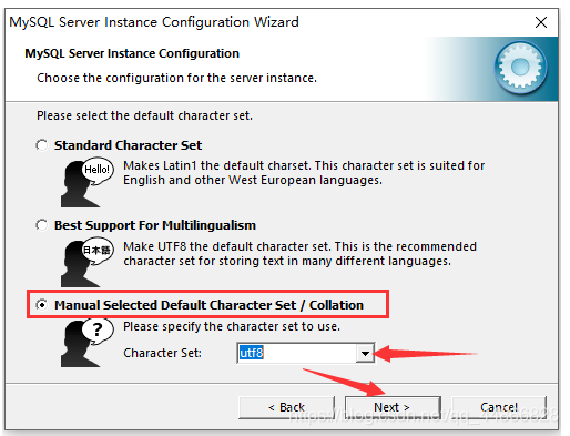 21、选择Manual Selected…,下拉框里选择utf-8或者gbk,点击Next