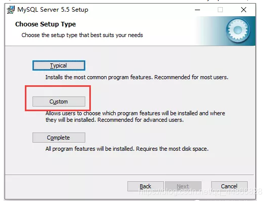 6、这里根据自己的需要选择安装。我这里只打算安装主程序mysql server,所以我选择了Custom