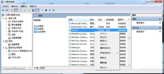 具体方法:右击“计算机”→“管理”→“服务与应用程序”→“服务”,在服务窗口中找到“mysql”服务,右击它,启动或停止。