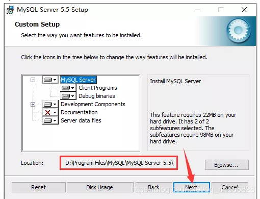 8、安装位置选择,这里我不去新建文件夹,只更改默认位置的安装盘,把C改成了D,后面的路径不变。