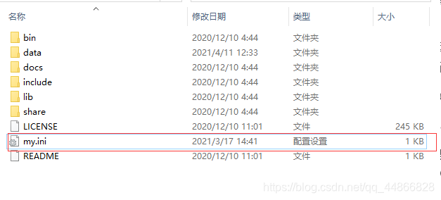 2、解压得到一个文件夹,打开它,新建一个my.ini配置文件,并在解压文件夹中新建一个名为data的文件夹。