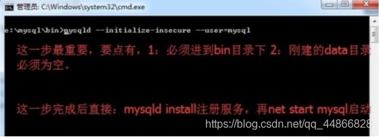 命令mysqld --initialize-insecure --user=mysql的作用:使用-initialize初始化,用-insecure生成空密码。默认帐号root,后面的-user=mysql不更改。