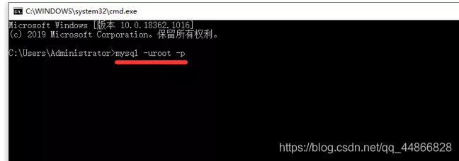 29、输入mysql -u root -p 然后按回车键(键盘上的Enter键)