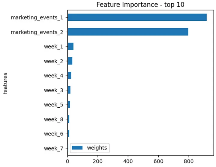 提取了十个最重要的协变量,这表明营销事件具有最高的重要性。