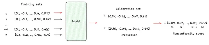 TimeGPT是一个基于transformer的模型,可以生成潜在结果的概率分布,即预测区间的估计。依靠基于历史误差的符合性预测 [8] 来估计预测区间。与传统方法不同,符合性预测不需要分布假设,可以通过以下步骤实现: