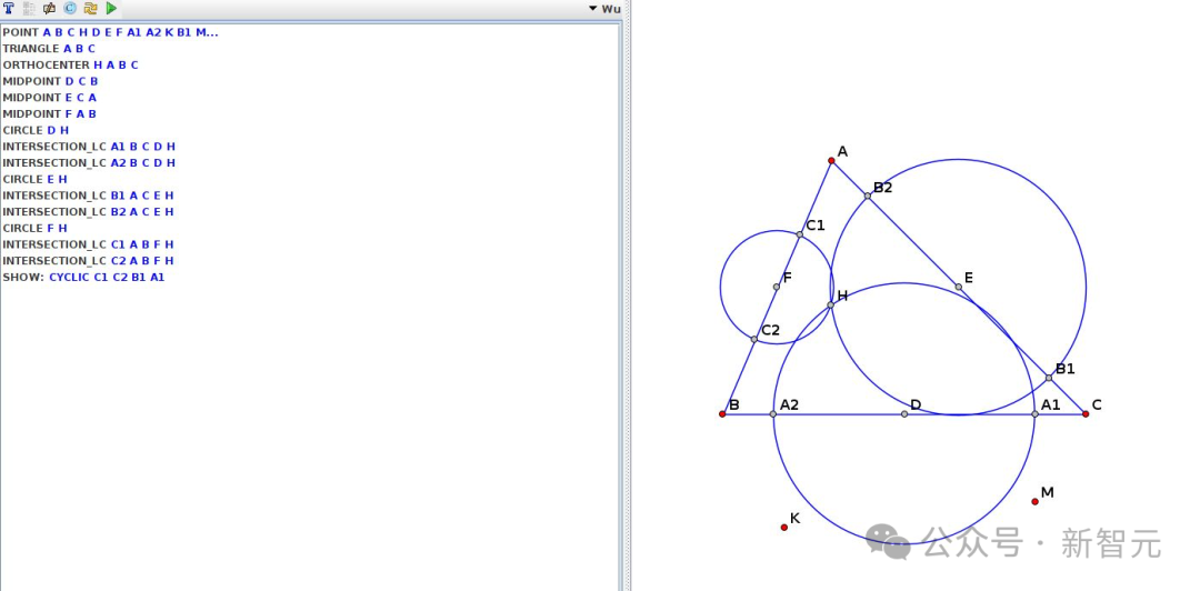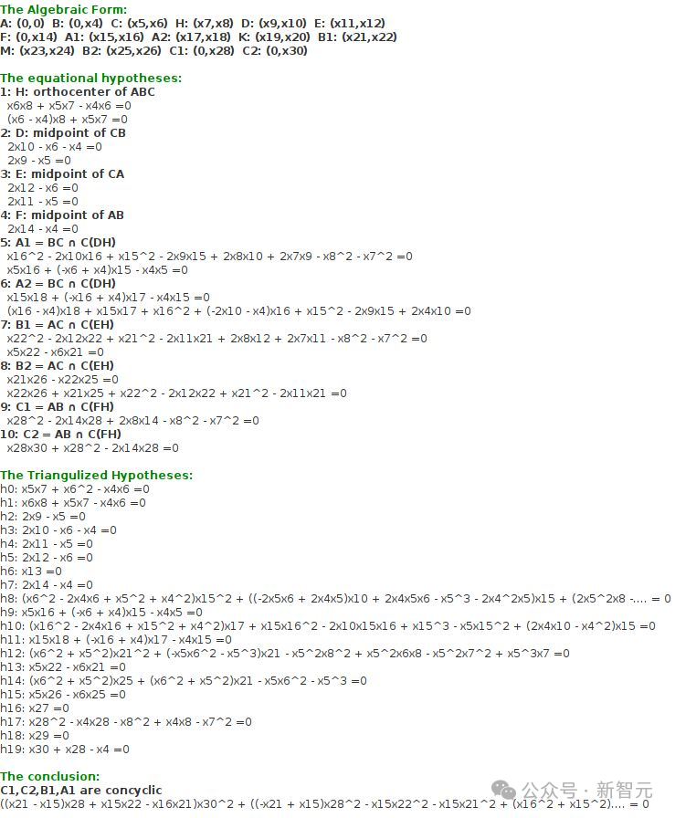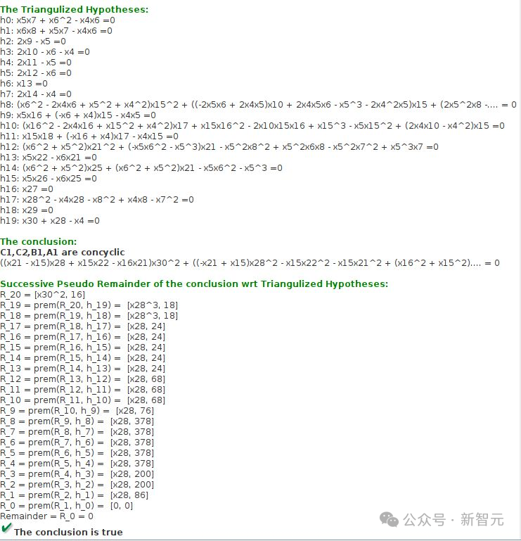 而吴方法和Gröbner基方法之类的代数方法,能够将几何假设,转换成多项式系统,来验证结论。