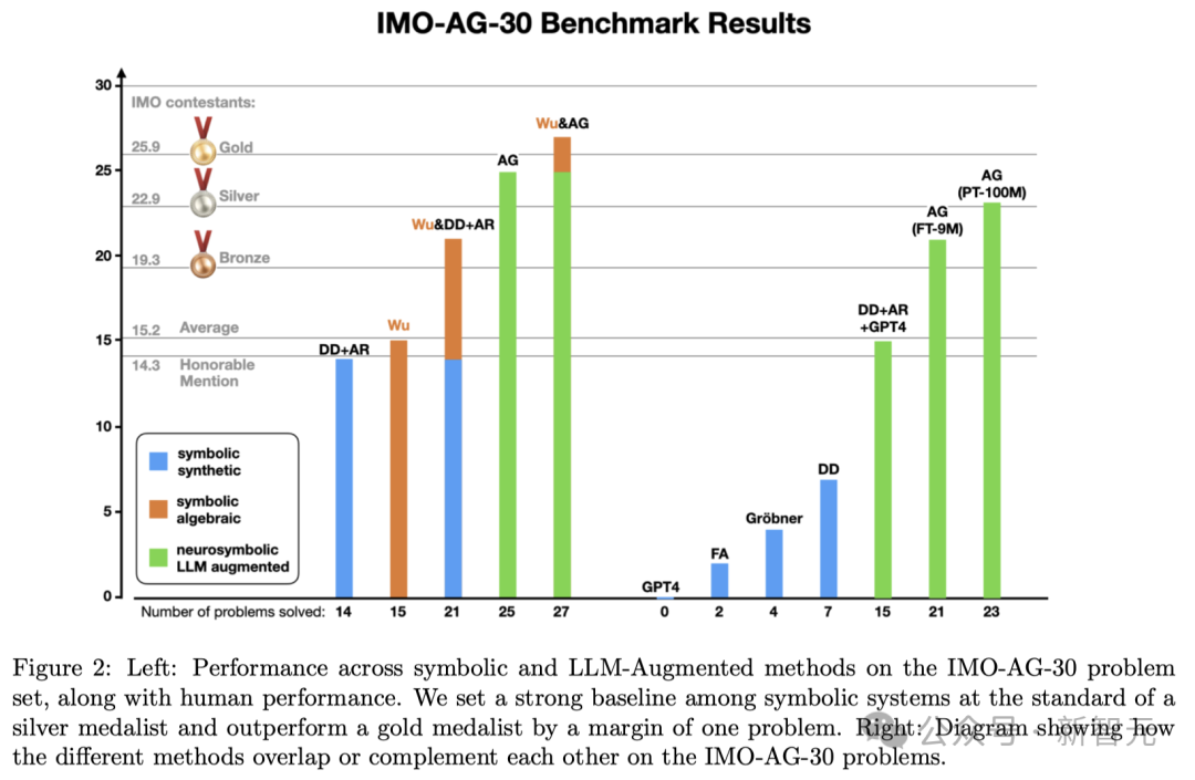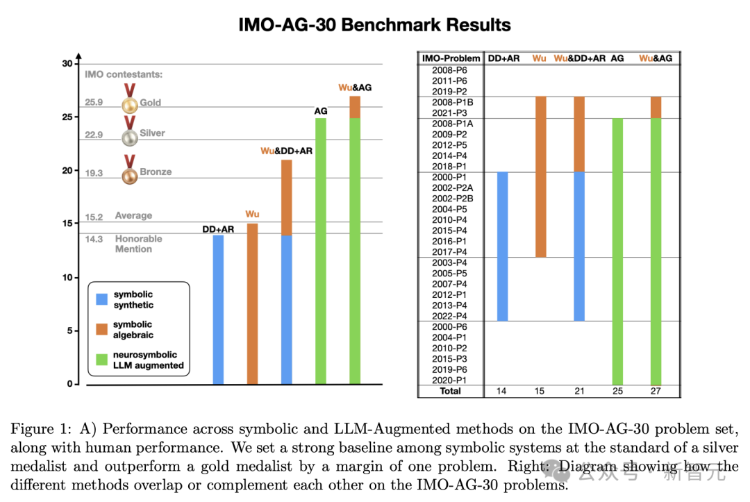 这种经典组合方法(Wu&DD+AR)仅比AlphaGeometry少解决了4个问题,并建立了第一个完全基于符号的基准,其性能足以与国际数学奥林匹克(IMO)银牌得主媲美。
