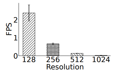 图 4:在NVIDIA A100 GPU上不同网格分辨率的重建帧率。