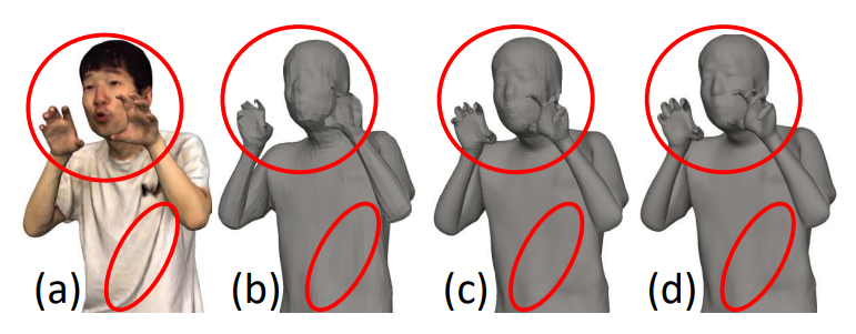 基于关键点的语义的主要优势是其数据大小小,因为关键点被表示为2D/3D坐标,且相对较少数量的关键点(例如大约100个)就可以代表人体模型。尽管最新技术倾向于在重建之前将关键点编码到参数化的身体模型(如SMPL-X)中,传输的数据量仍然很小(例如,每帧约1.91 KB,如§4所示)。然而,如此小的数据量对于时间效率高且在视觉上令人满意的内容重建提出了显著的挑战。