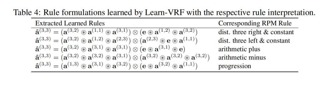 在Learn‑VRF中,VSA空间中的单一规则可以通过各种同义表示来描述。作为示例,让我们检查最后一行的算术加法规则: