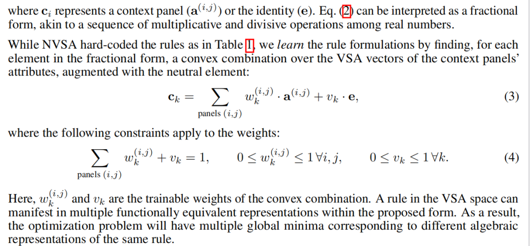 其中a(i,3)来自采样或加权组合。从第一行和第二行导出的项完善了规则选择机制,而与真实答案相关的项则调整负责预测空面板的 VSA 向量的权重。