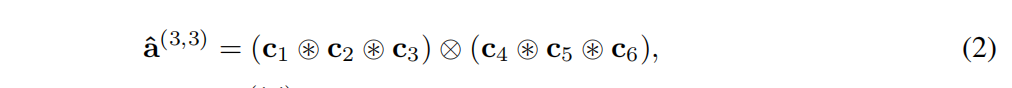 其中,N 是面板级 PMF 空间的维度。类似于 NVSA [20],我们使用一个二进制的 SBC 字典 {bk}^N_k=1,其中每个基向量(bi)具有1024维和四个块。结合分数幂编码 [24],这个基允许对连续属性(例如颜色或大小)进行表示。不同上下文面板的 VSA 表示由 Ac := (a(1,1), a(1,2), ... a(3,2)) 表示。