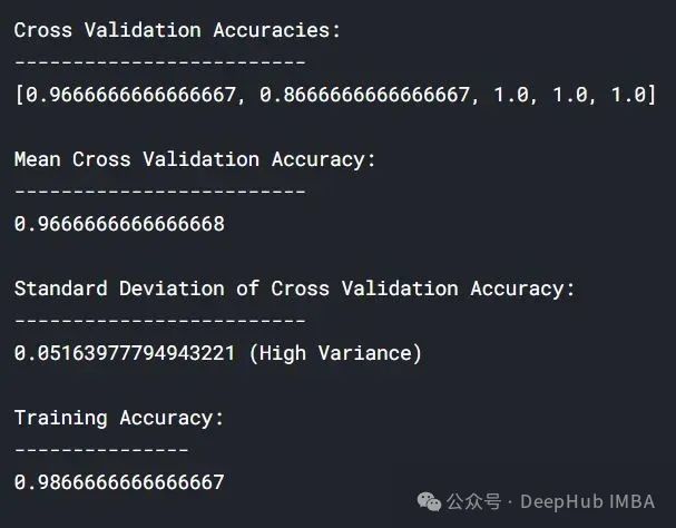 上面的结果中,交叉验证准确率与训练准确率接近。