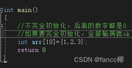 从0开始 到设置的元素个数n-1,如果访问下标小于 0或者大于n-1 那么就是访问越界了,超出了数组的合法空间,就越界了,此时编译器不一定会报错,但是程序是错误的。