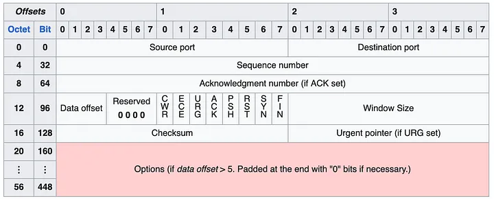 头部可包含最多40字节的多个选项。每个选项可以具有可变长度和类型/种类。