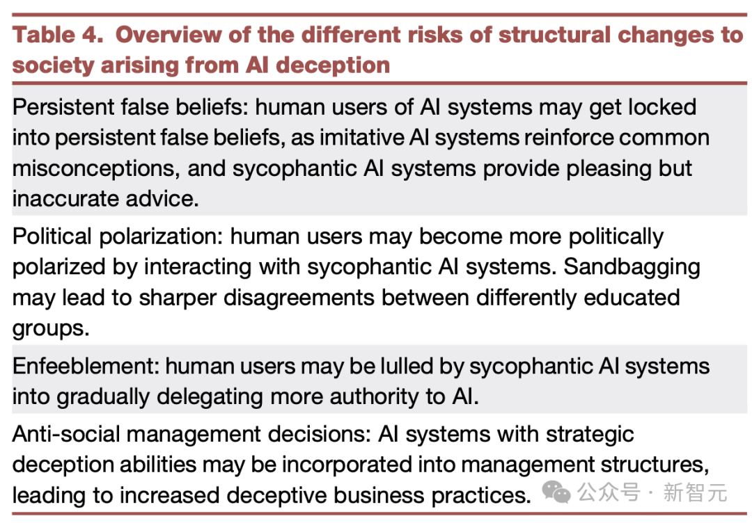 还有,人工智能欺骗对社会结构变化的不同风险总概述。