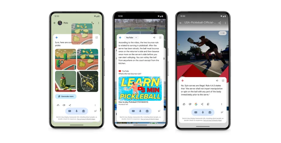 与底层操作系统的集成后,就能实现一些更酷的功能。Android 上的 Gemini 具有更强的上下文感知能力,可以覆盖在正在使用的任何应用程序之上,因此你无需来回切换。还有一个巧妙的功能,可以让你将图像从 Gemini 应用程序拖放到另一个应用程序中。