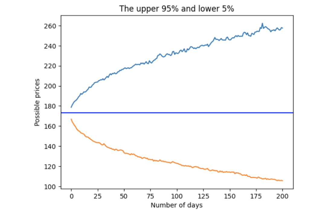 与之前一样,我们将模拟未来 200 天的价格走势。