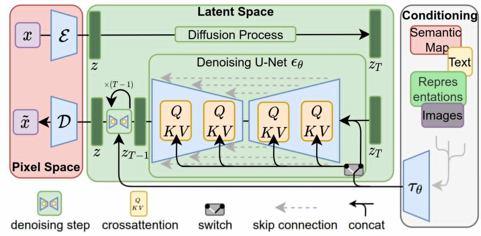 稳定扩散的训练目标是最小化反向扩散过程的对数似然负损失。通过变分推断(Variational Inference),该目标可以分解为以下两部分: