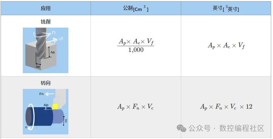 金属去除率(Q): 加工操作在一分钟内去除的材料体积(单位为立方厘米或立方英寸)