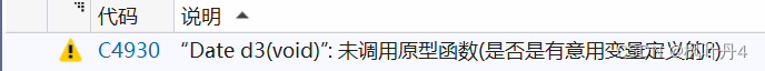 }注意:如果通过无参构造函数创建对象时,对象后面不用跟括号,否则就成了函数的声明。 如Date d3();声明了d3函数,该函数无参,返回一个日期类的对象。