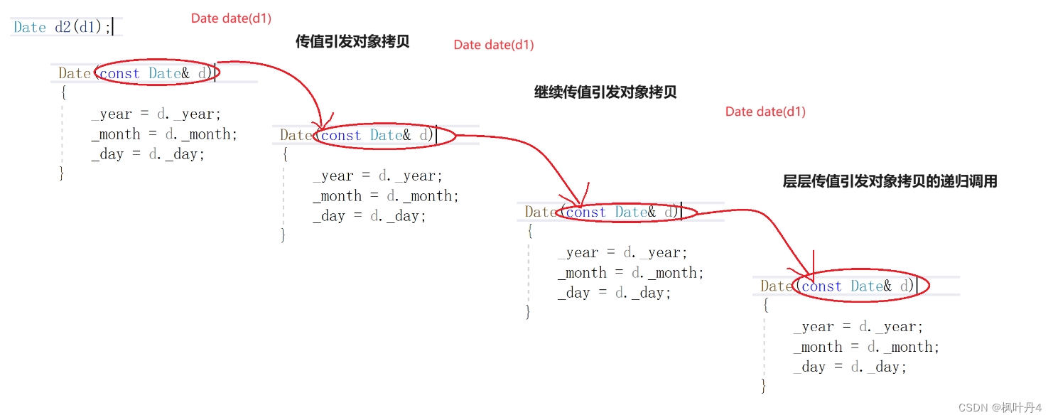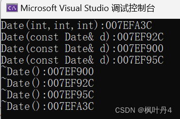 Date d2(2024, 2, 4); // 调用带参的构造函数