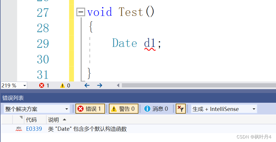 }关于编译器生成的默认成员函数,不禁产生疑问:不实现构造函数的情况下,编译器会生成默认的构造函数。但是看起来默认构造函数又没什么用?d对象调用了编译器生成的默认构造函数,但是d对象_year/_month/_day,依旧是随机值。也就说在这里编译器生成的默认构造函数并没有什么用??