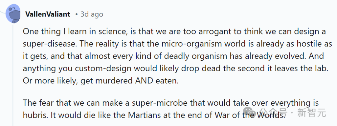对此,有网友表示反对:「担心我们可以制造出一种将接管一切的超级微生物,这是狂妄自大。」