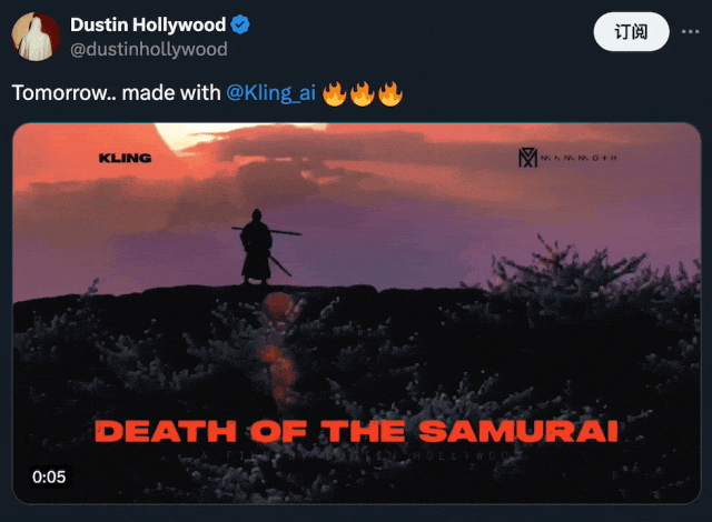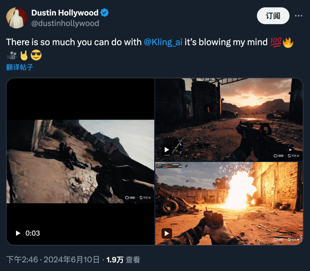 可灵生成作品。图源:https://x.com/dustinhollywood/status/1799970059957555210