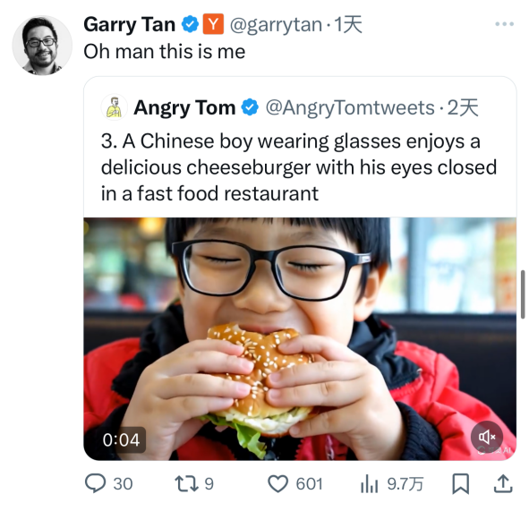 YC CEO 也在 X 平台转发了可灵生成的 Demo: