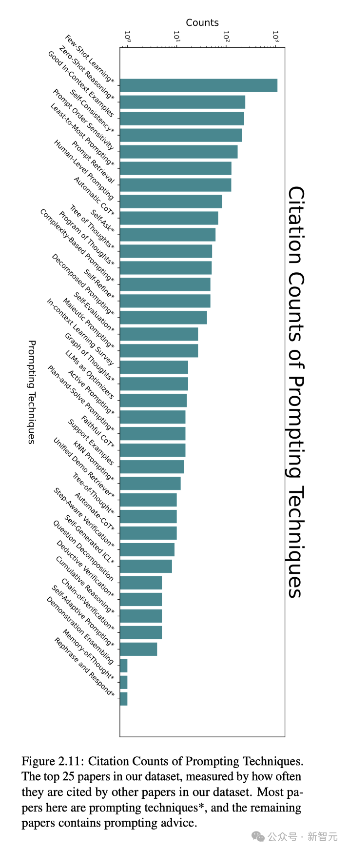 最后,研究者总结发现,在所有的提示技术中,少样本学习、零样本推理、高质量上下文提示示例,自洽,提示顺序敏感性使用率排在了前五。