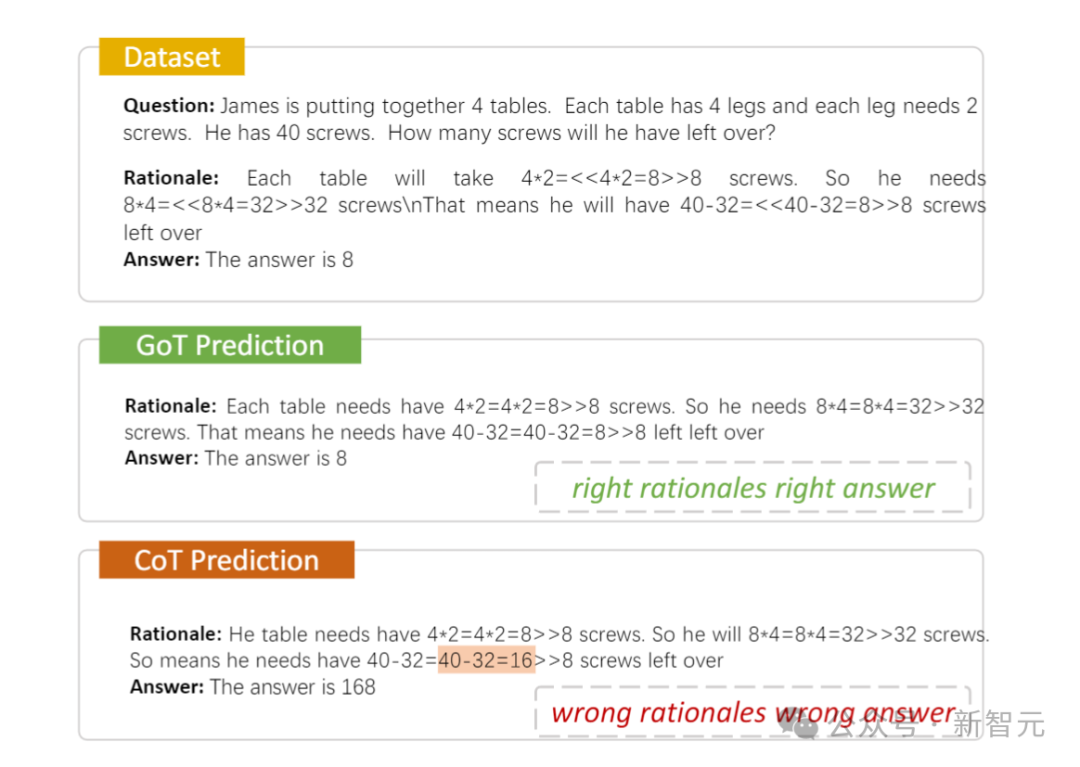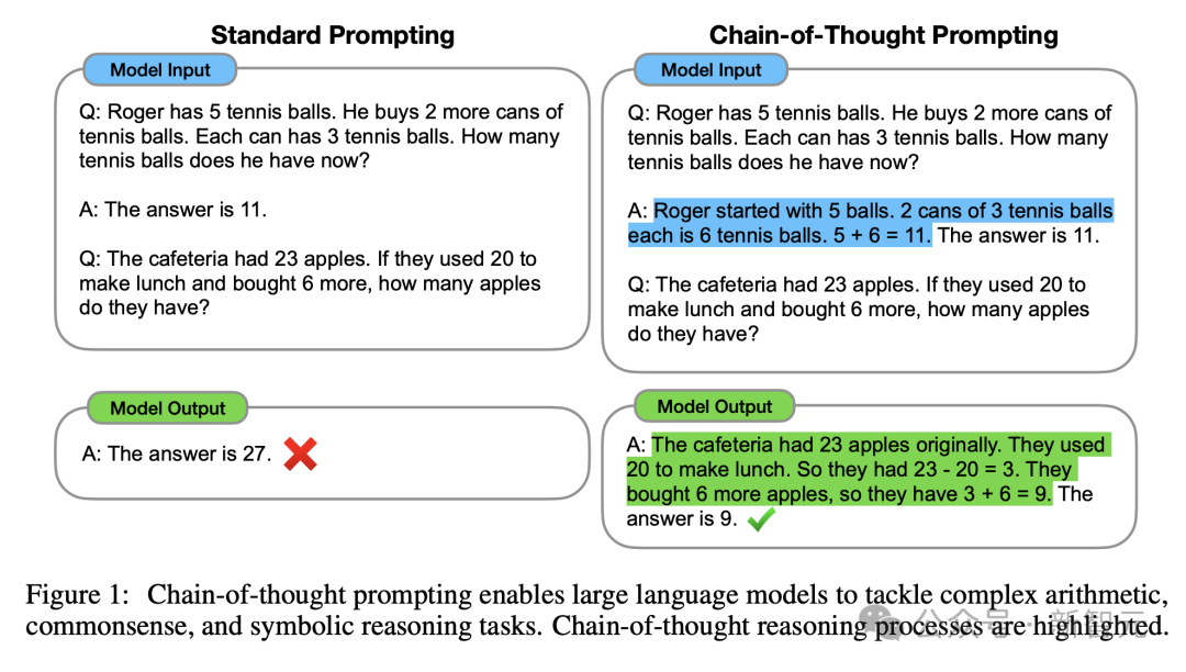 此外,CoT还可以是少样本CoT,顾名思义,就是为LLM提供一些样本,可大幅提升模型性能。