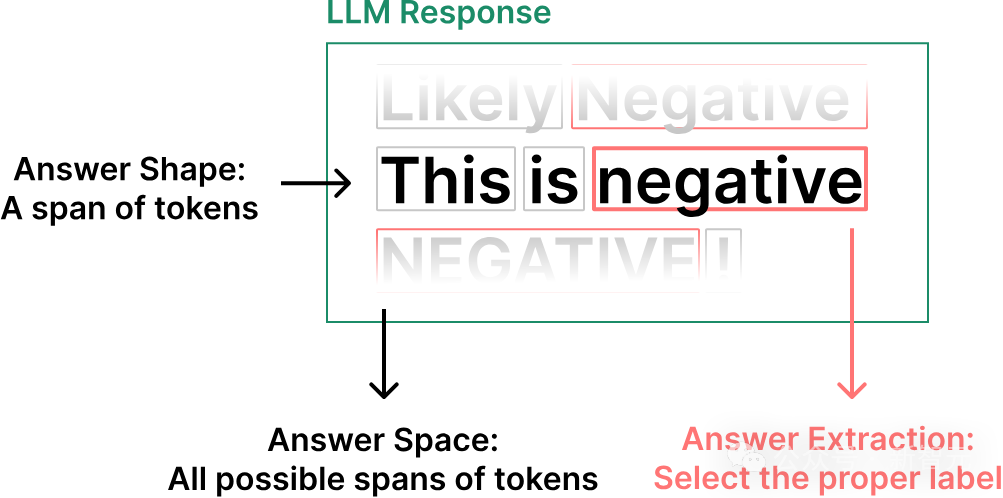 由于这是一个分类任务的输出,答案形状可以限制为单个token,答案空间可以限制为两个token之一(「positive」或「negative」),尽管在这个图像中它们没有被限制。