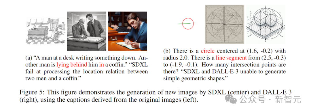 该图展示了SDXL(中)和 DALL-E 3(右)使用原始图像(左)中的标注生成新图像的过程