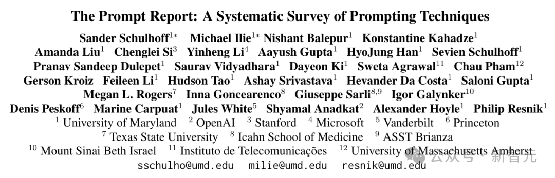 最近,来自马里兰大学、OpenAI、斯坦福、微软等12所机构的30多名研究者,首次对LLM的提示技术进行了大规模的系统研究,并发布了一份长达75页的详尽报告。