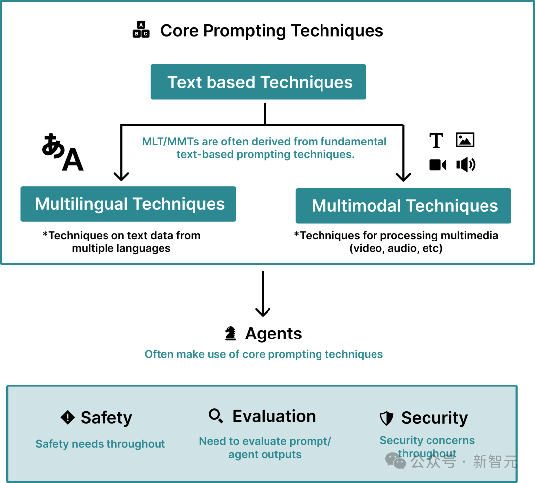 论文中,研究人员提出了全面的分类提示技术——基于文本、多语言、多模态三大类。