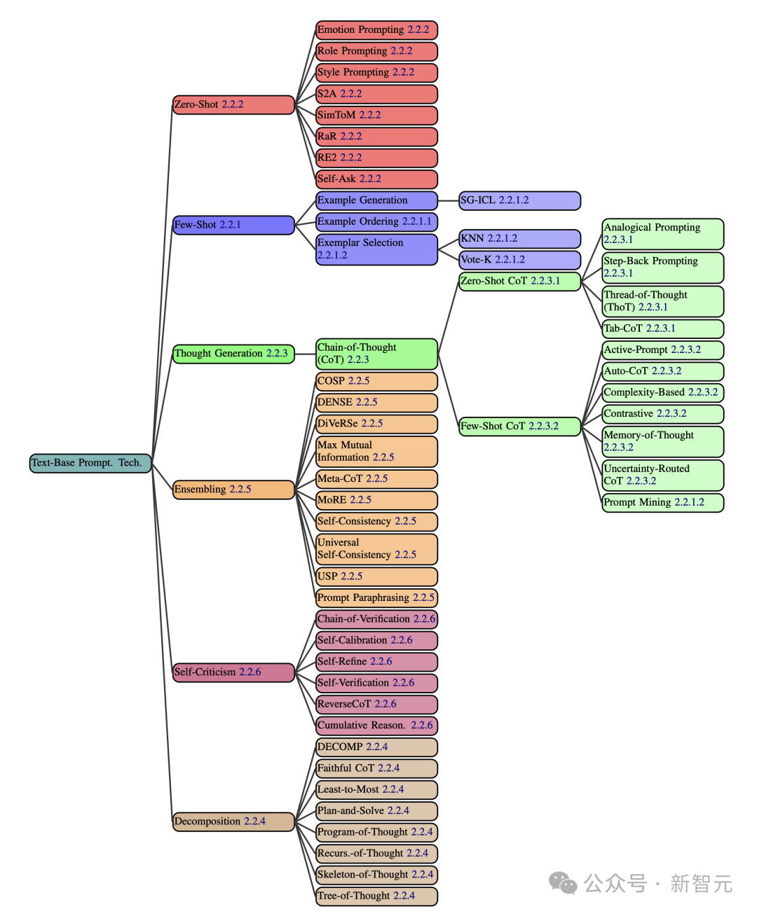 在文本提示类中,整整涵盖了58种纯文本提示技术,如下图所示。