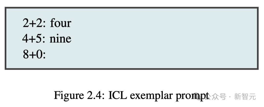 比如,你给出2+2=4,4+5=9,然后8+0这样的提示之后,LLM便会从前两个算式中学习推算,进而解决任务。