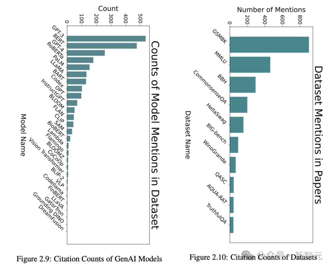 与此同时,我们还可以通过数据集中论文引用的基准数据集和模型次数,来衡量提示技术的使用情况。