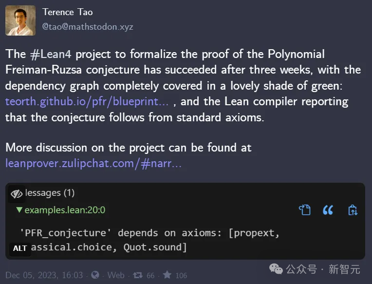 陶哲轩借助Lean 4成功完成PFR猜想的证明